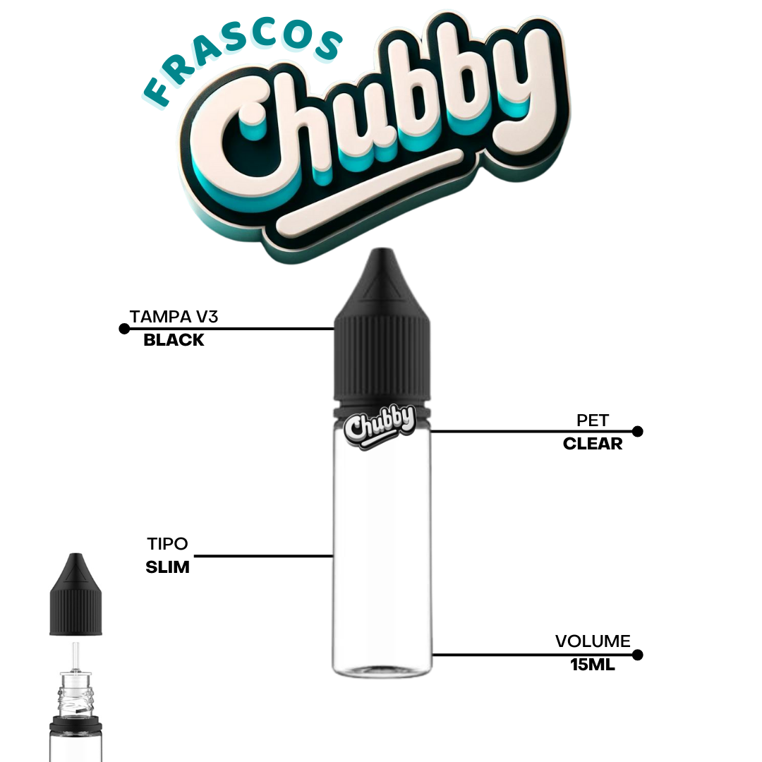 Frasco Chubby Pet Virgem Grau Alimentício V3 de 15ml, disponível nas cores: