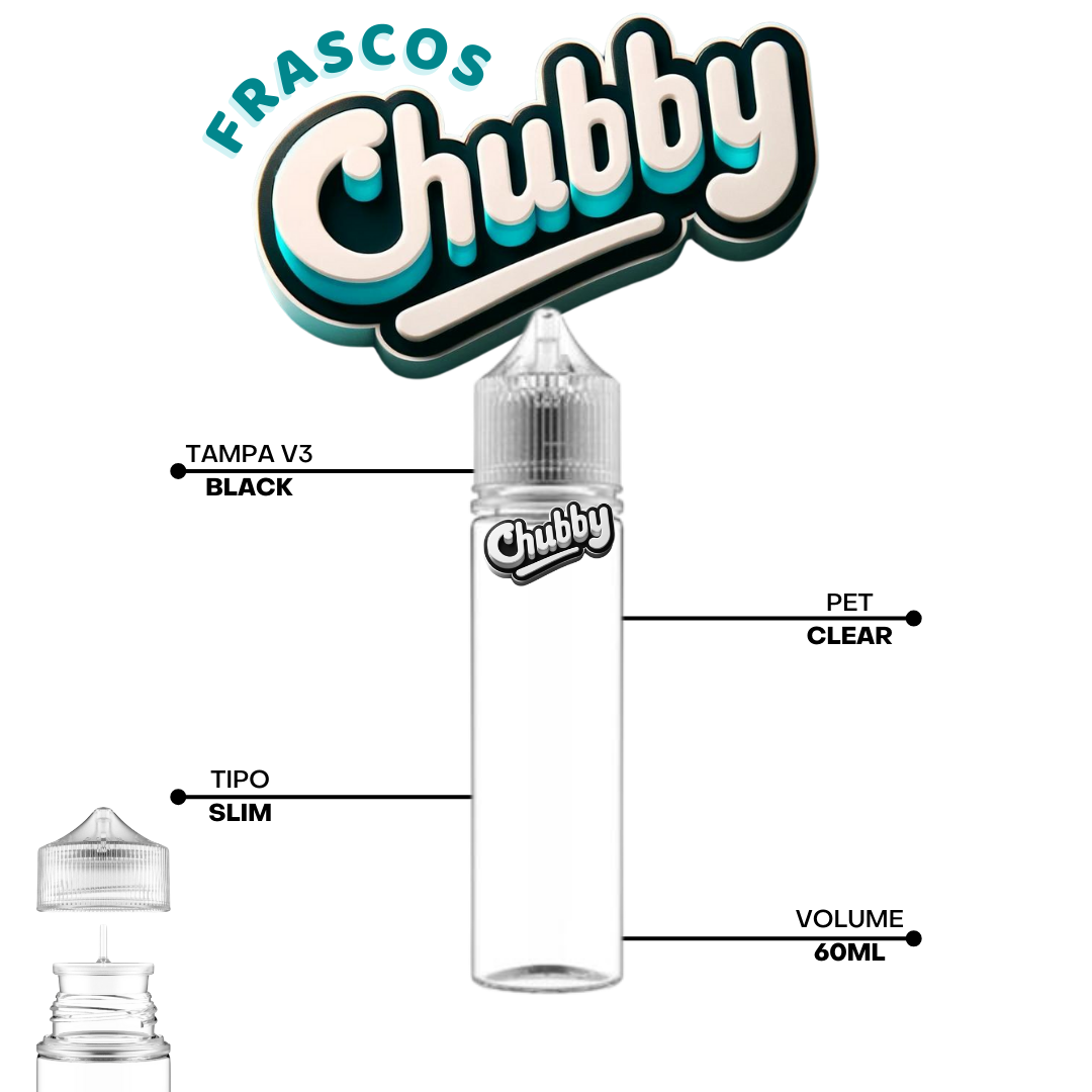 Frasco Chubby Pet Virgem Grau Alimentício V3 de 60ml, disponível nas cores: