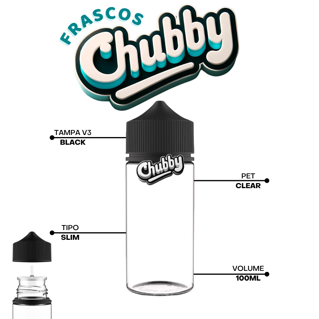 Frasco Chubby Pet Virgem Grau Alimentício V3 de 100ml, disponível nas cores: